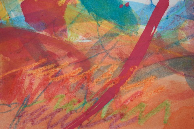My daughter and I scribbled with crayon … And she splashed the paint.