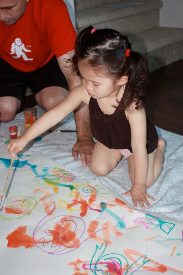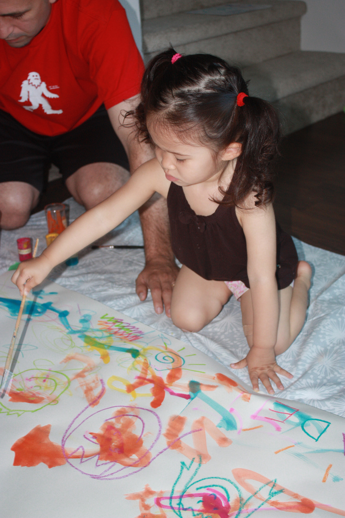 My daughter and I scribbled with crayon … And she splashed the paint.