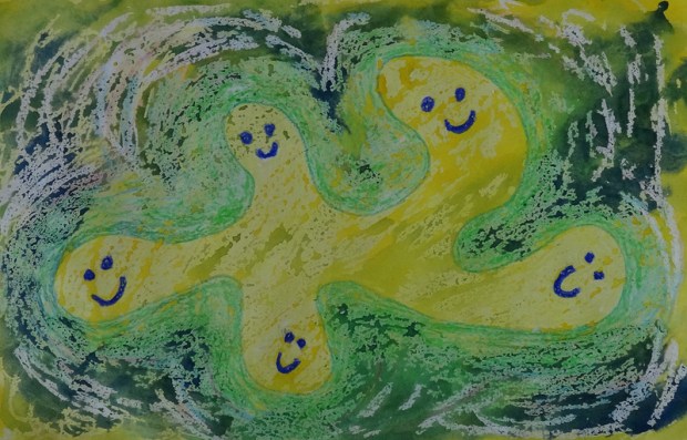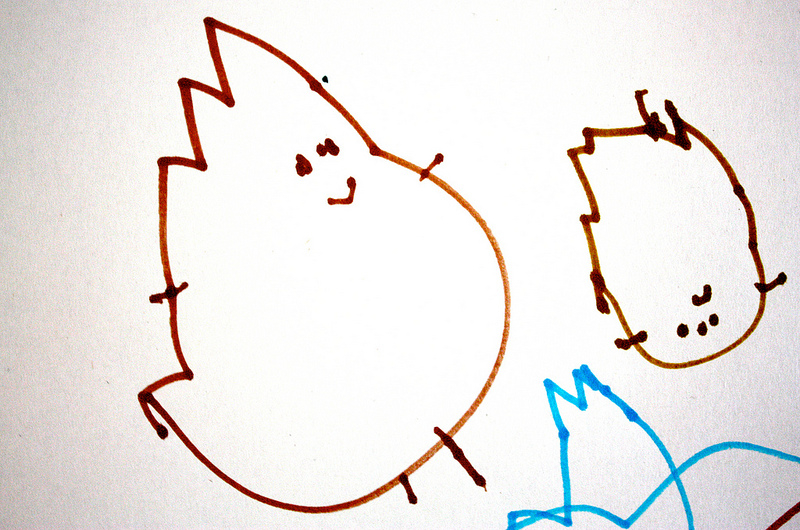 “It’s a little worm parade.” Jade explains the bottom squiggles on the page.