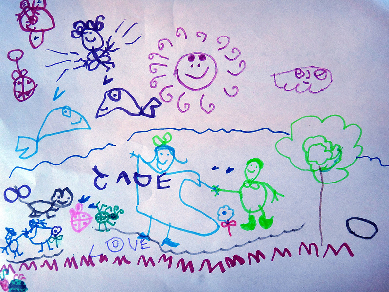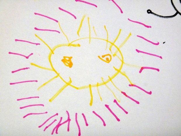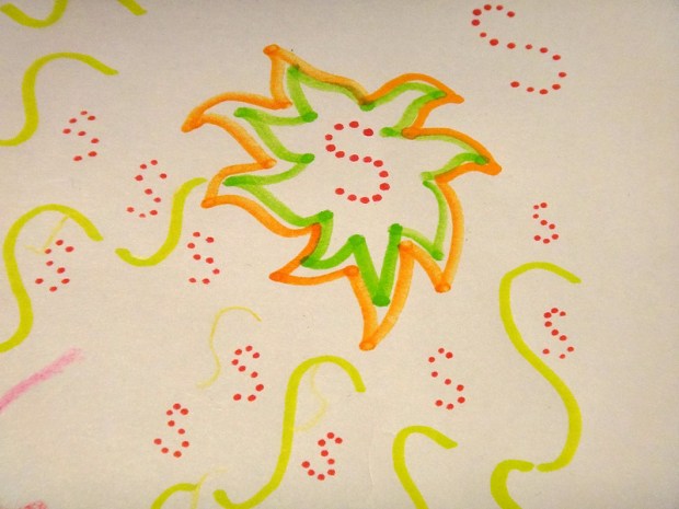 “This is a sun.” Jade describes her drawing.