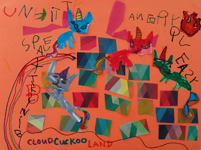 Jade still isn’t very comfortable using scissors so we brainstormed a project. She really wanted to create something with the Unikitty character (I had nooo idea what she was talking about). After some internet research, we recreated Unikitty’s home in Cloud Cuckoo Land.