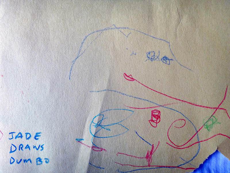 Jade was even motivated to try … below is her drawing of Dumbo.