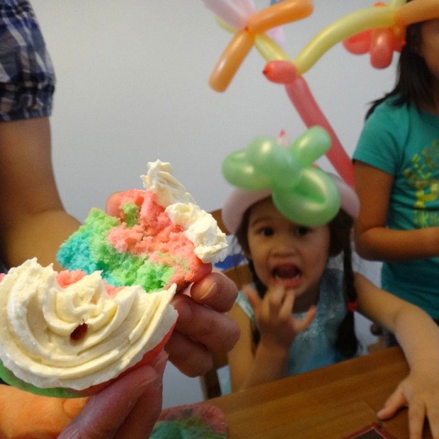 Colourful rainbow cupcakes. Jade had such a fun time!