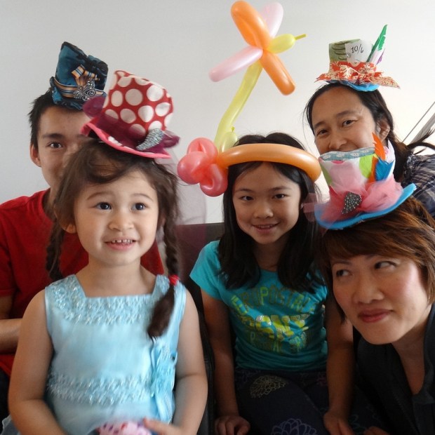 Mad Hatter Tea Party … My wife made the hats … and I learned to make balloon hats.