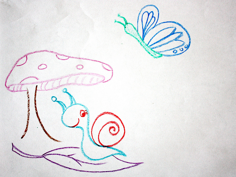 Living in harmony with butterflies, snails and mushrooms. My wife’s fun doodle.