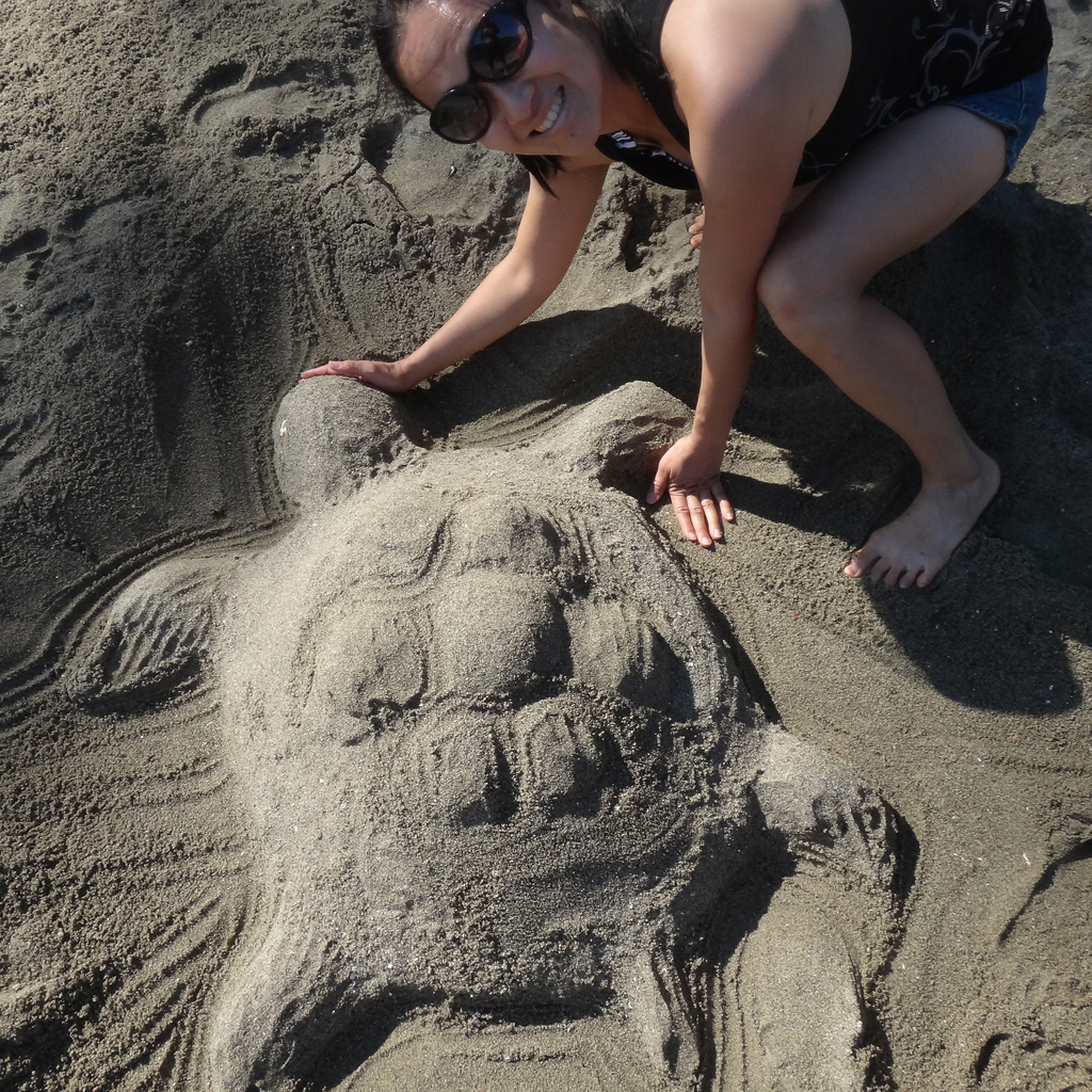 My wife is pretty good with the sand … She made this amazing sea turtle for Jade.