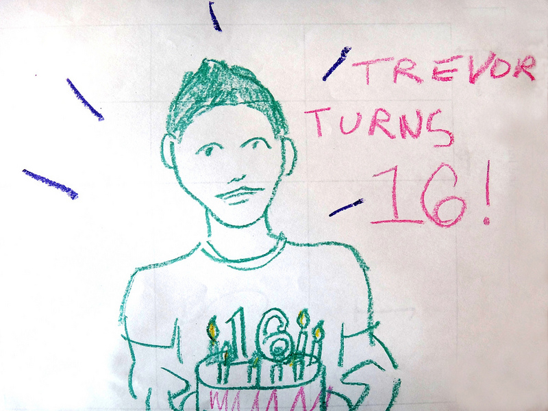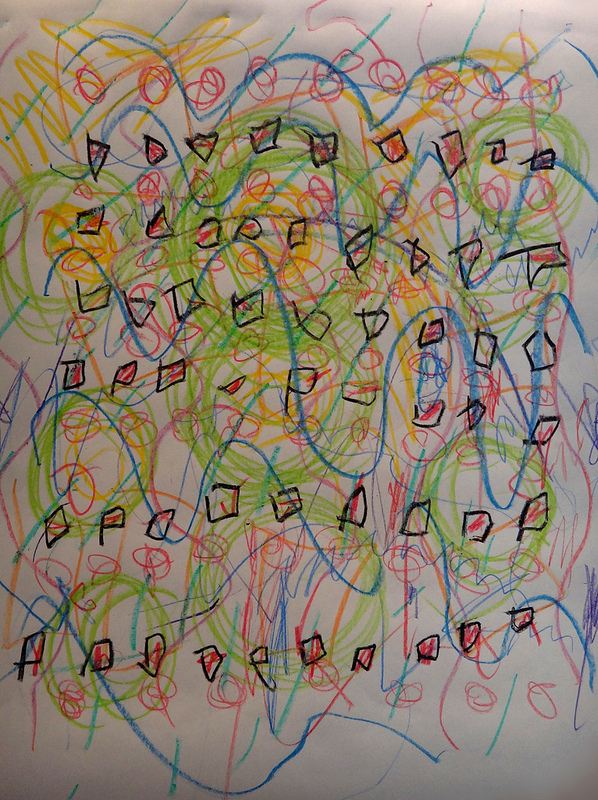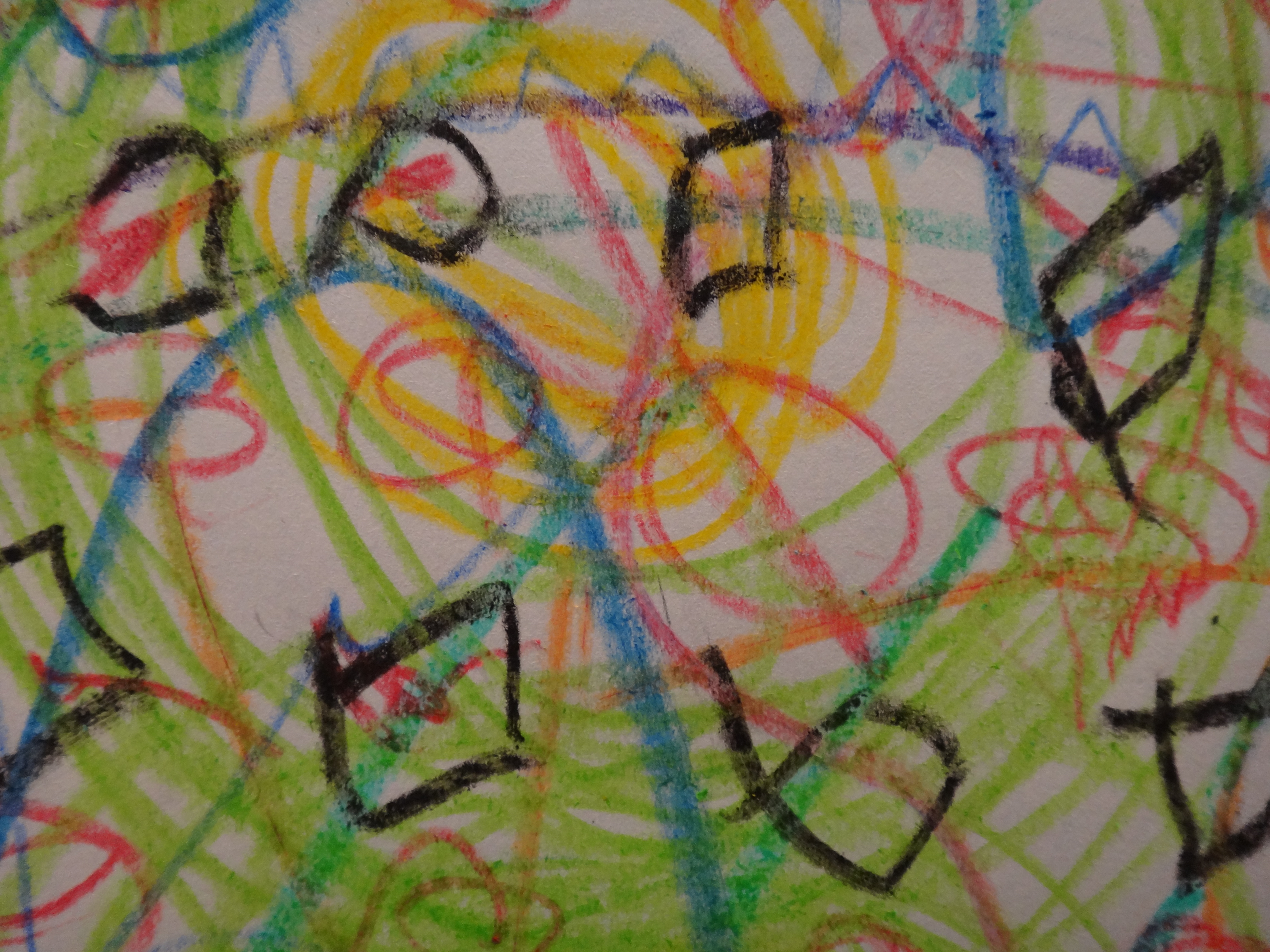 My Daughter and I collaborated on a big, squiggle, crayon drawing.