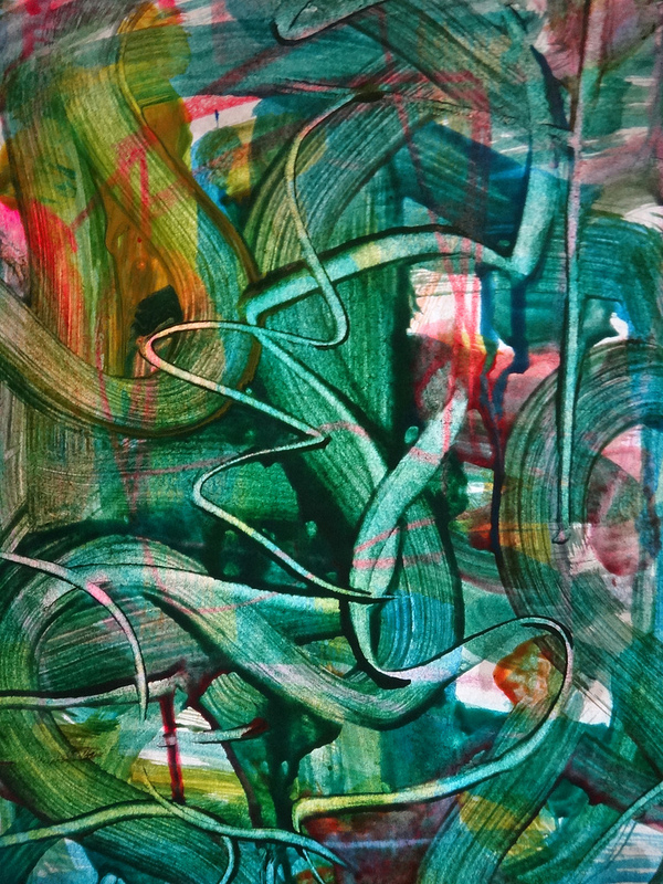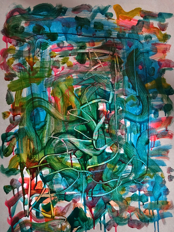 My daughter and I collaborated on a big, squiggle painting and drawing.