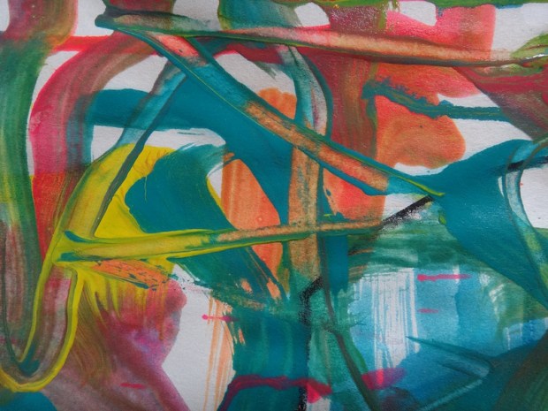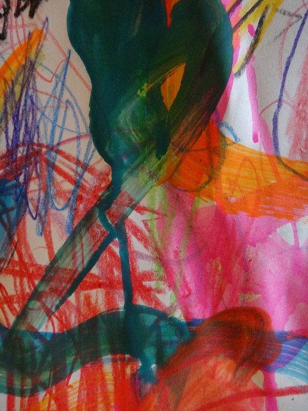 My daughter and I scribbled with crayon … And she splashed the paint.