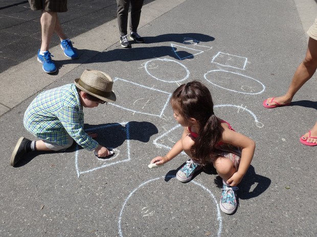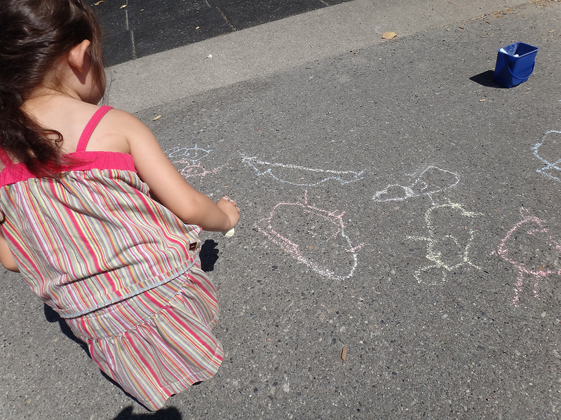 Jade & I collaborate with chalk art at the farmer’s market kid zone.