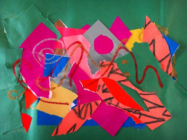 I’ll draw the shapes, Jade’ll draw the details (faces in shapes, shoes, arms, etc.)
