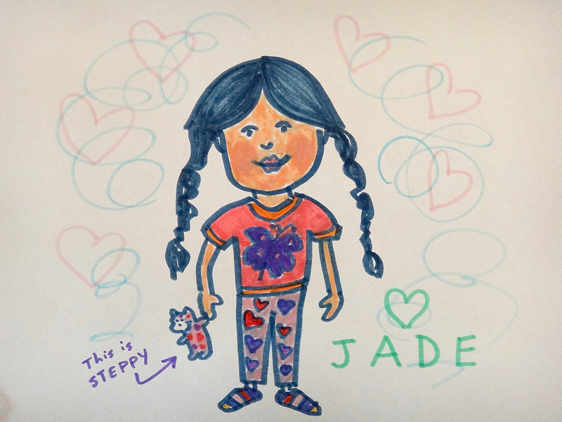 I’m always hearing “Draw Steppy.” Jade likes to add new features (mittens, shoes, etc).